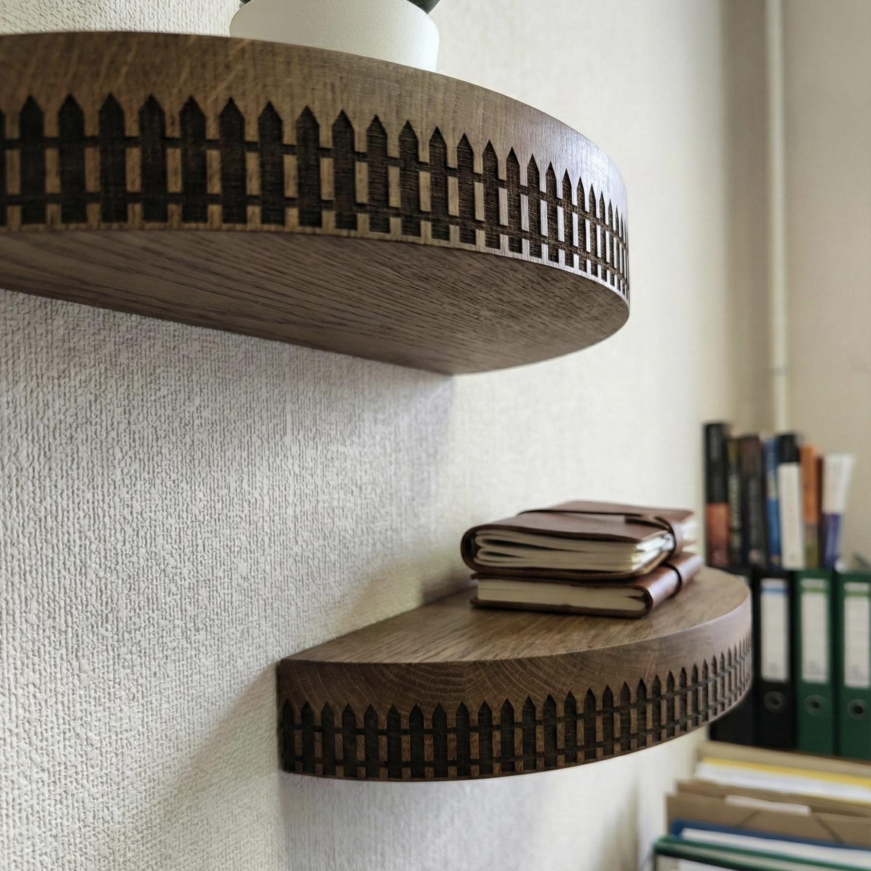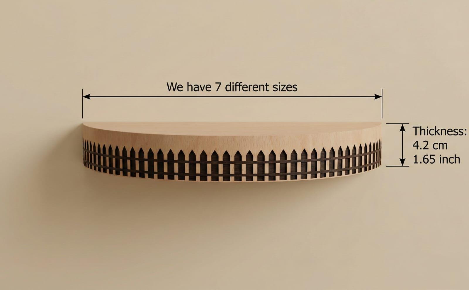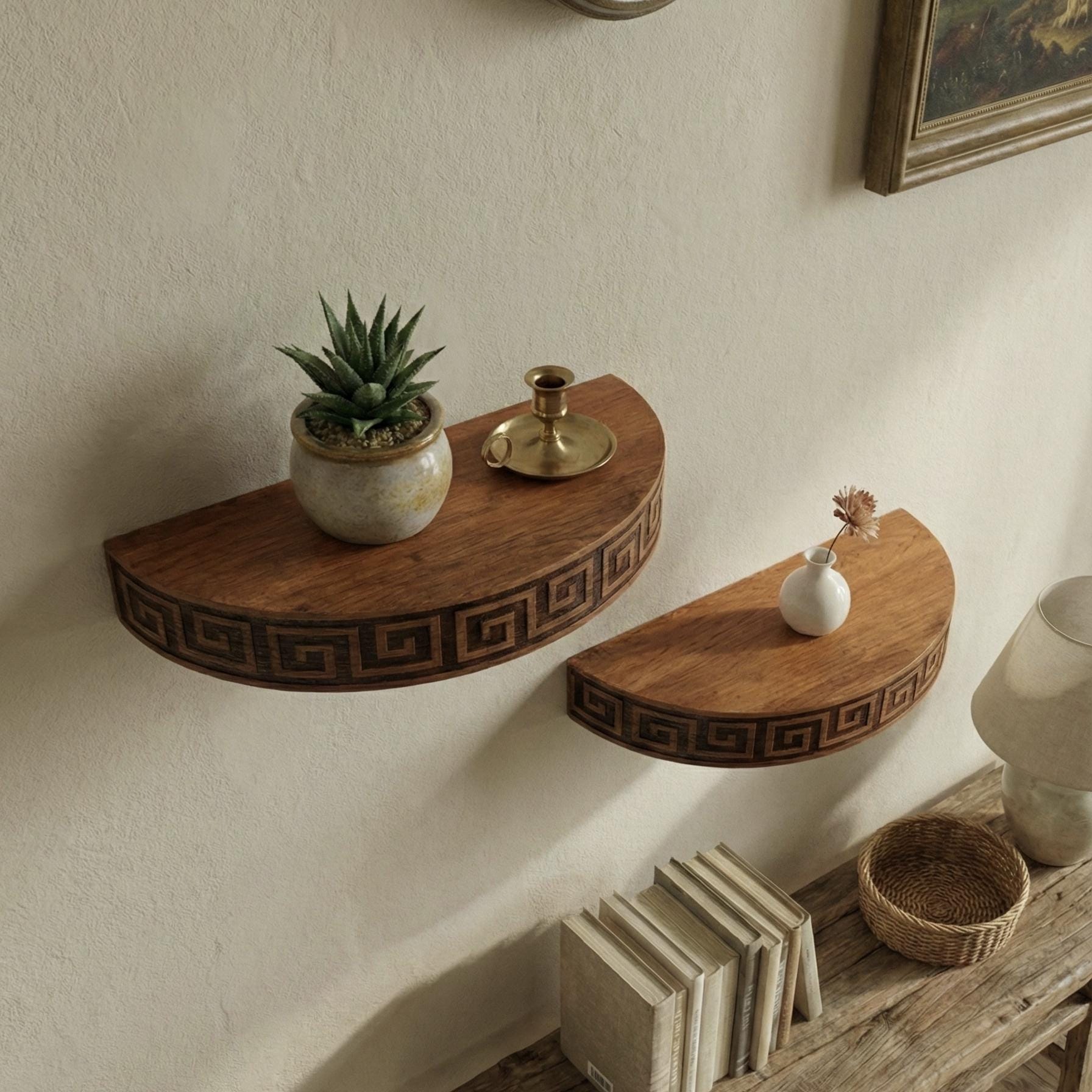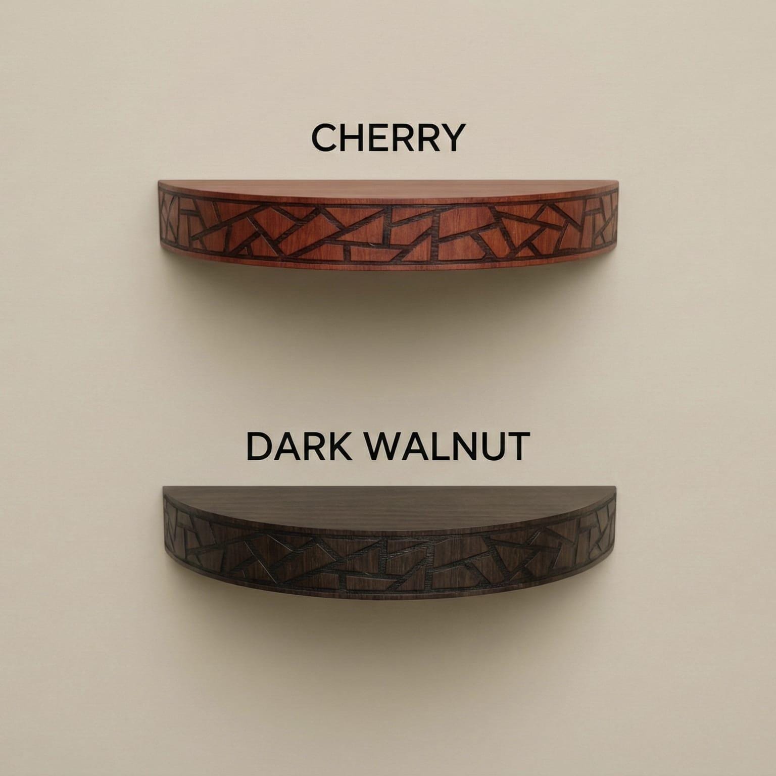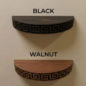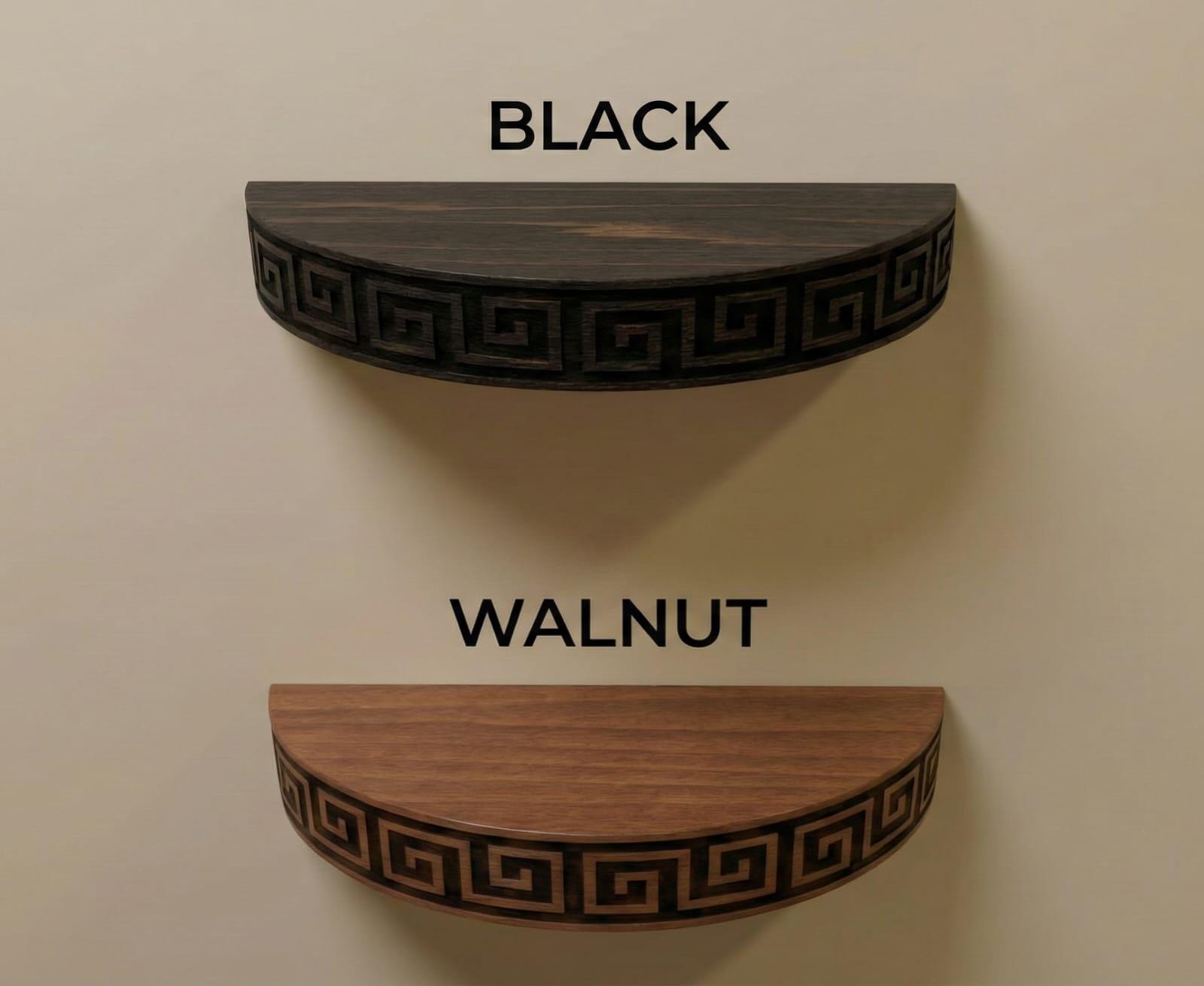 Half Moon Floating Wall Shelf | Semicircle Wood Shelf | Geometric Mosaic / Greek Key / Picket Fence Edge