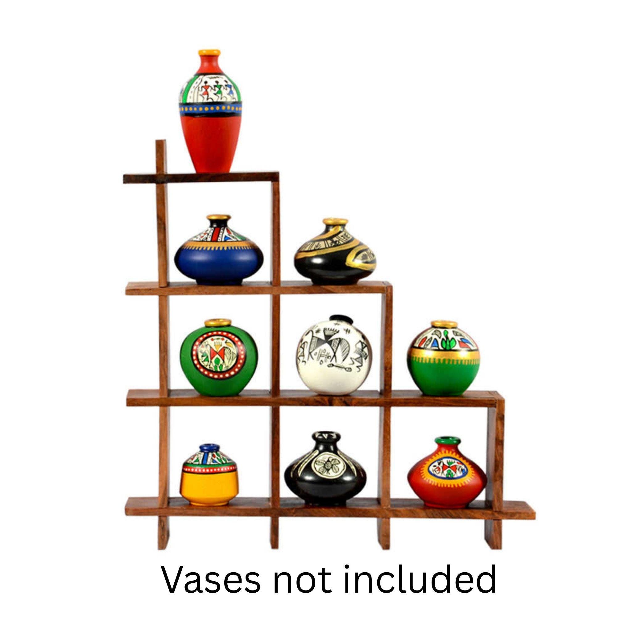 Elevate your home decor with our artisanal wooden stepped shelf. Designed with a unique staggered silhouette, this shelf provides the perfect geometric backdrop for your favorite miniatures, succulents, or crystals.