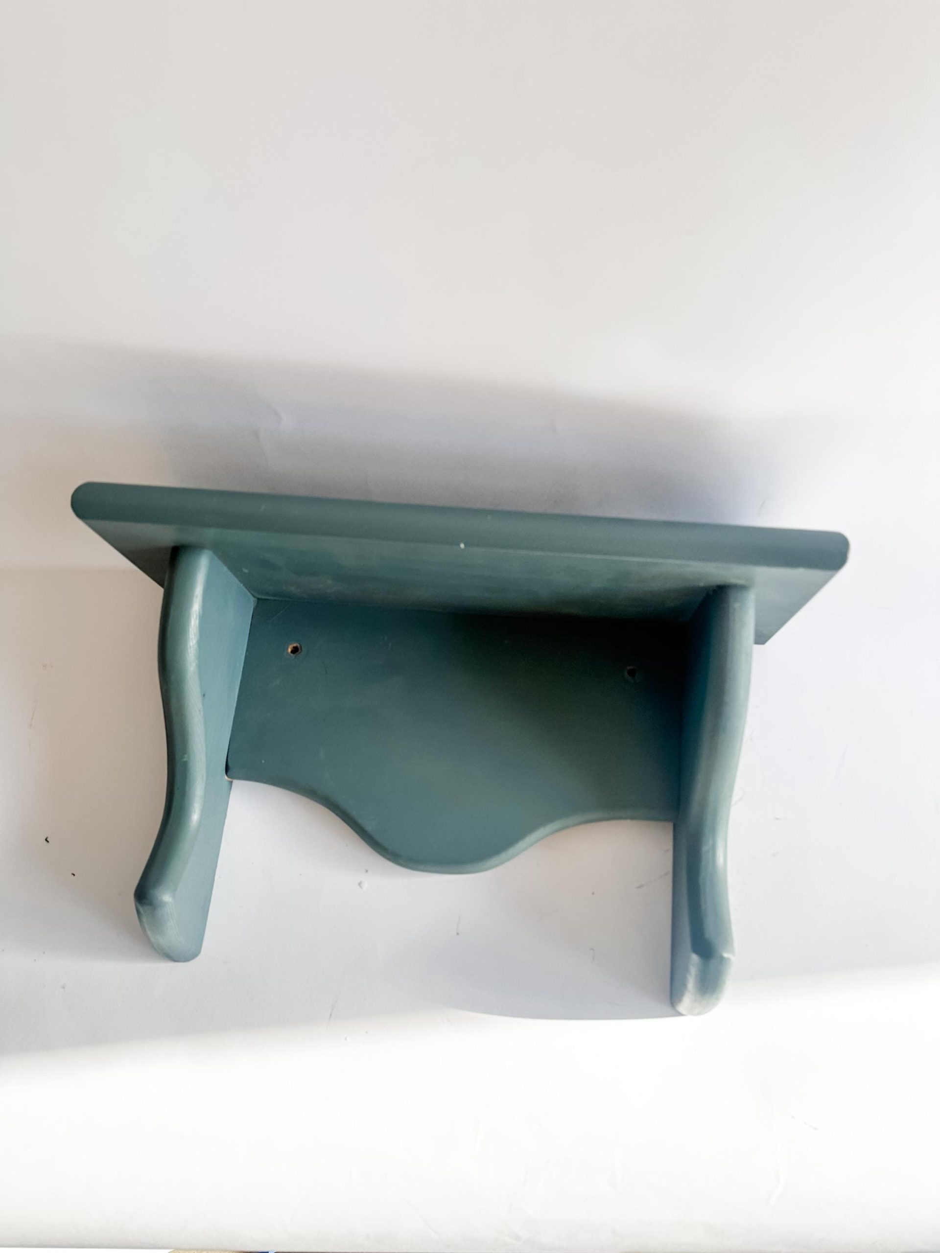 Vintage Teal Wood Wall Shelf | Small Cottage Shelf | Farmhouse Wall Decor | Painted Wooden Shelf | 1980s Home Decor